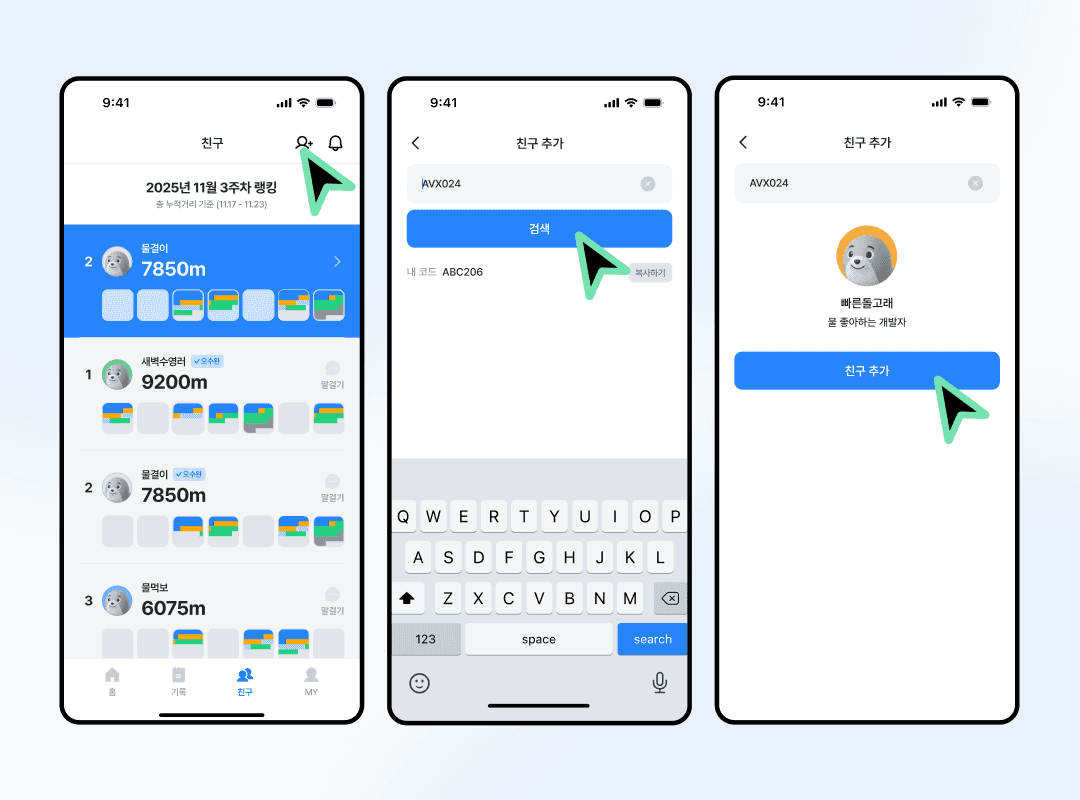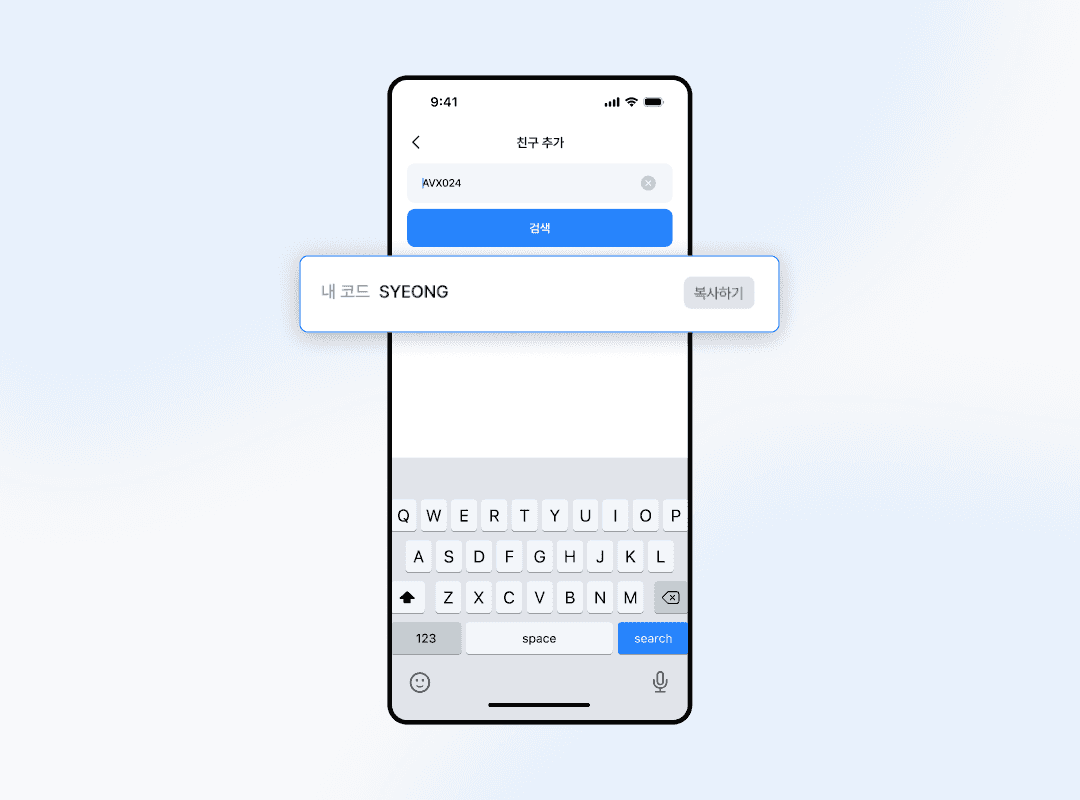 💡 코드는 친구 추가 화면과 MY 화면에서 확인할 수 있어요