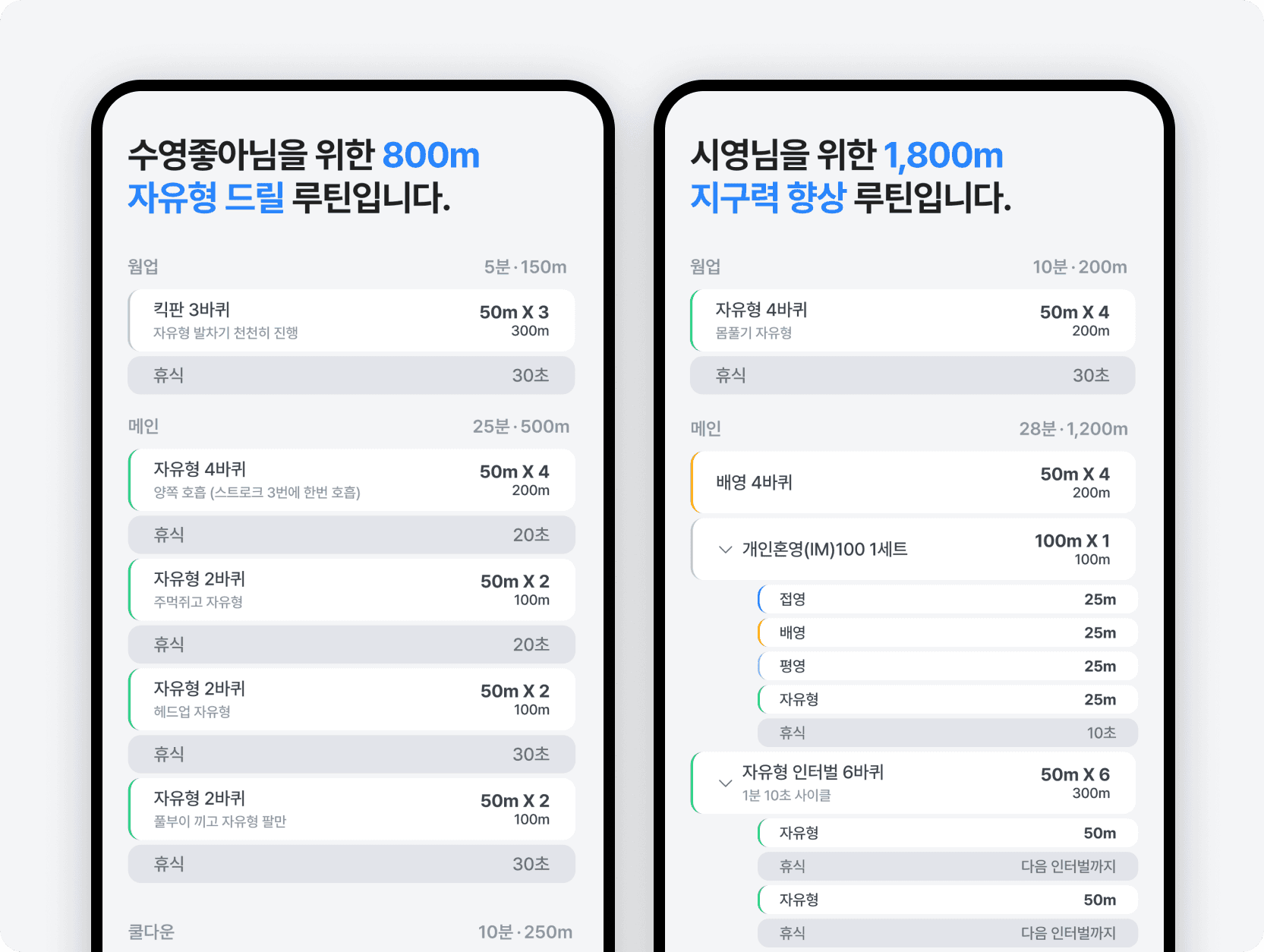 ✔️ 내 목적에 맞게 (기록 단축, 특정 영법 집중 연습, 지구력 증가)